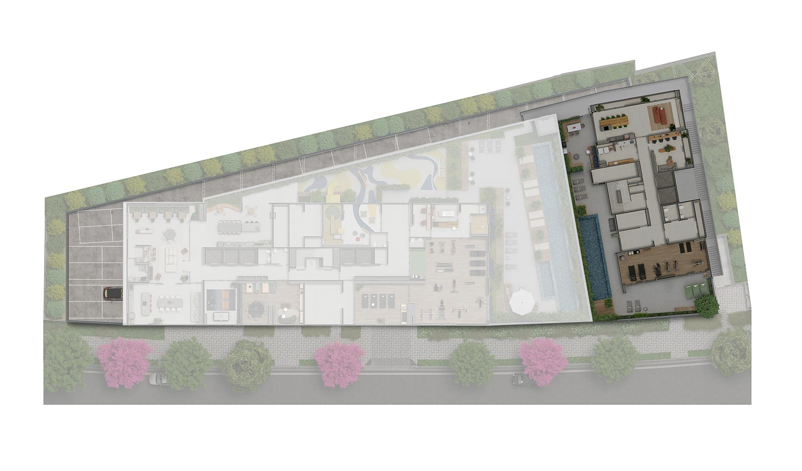 Acesse as implantações dos pavimentos de acesso e lazer clicando nos botões abaixo entre as abas.